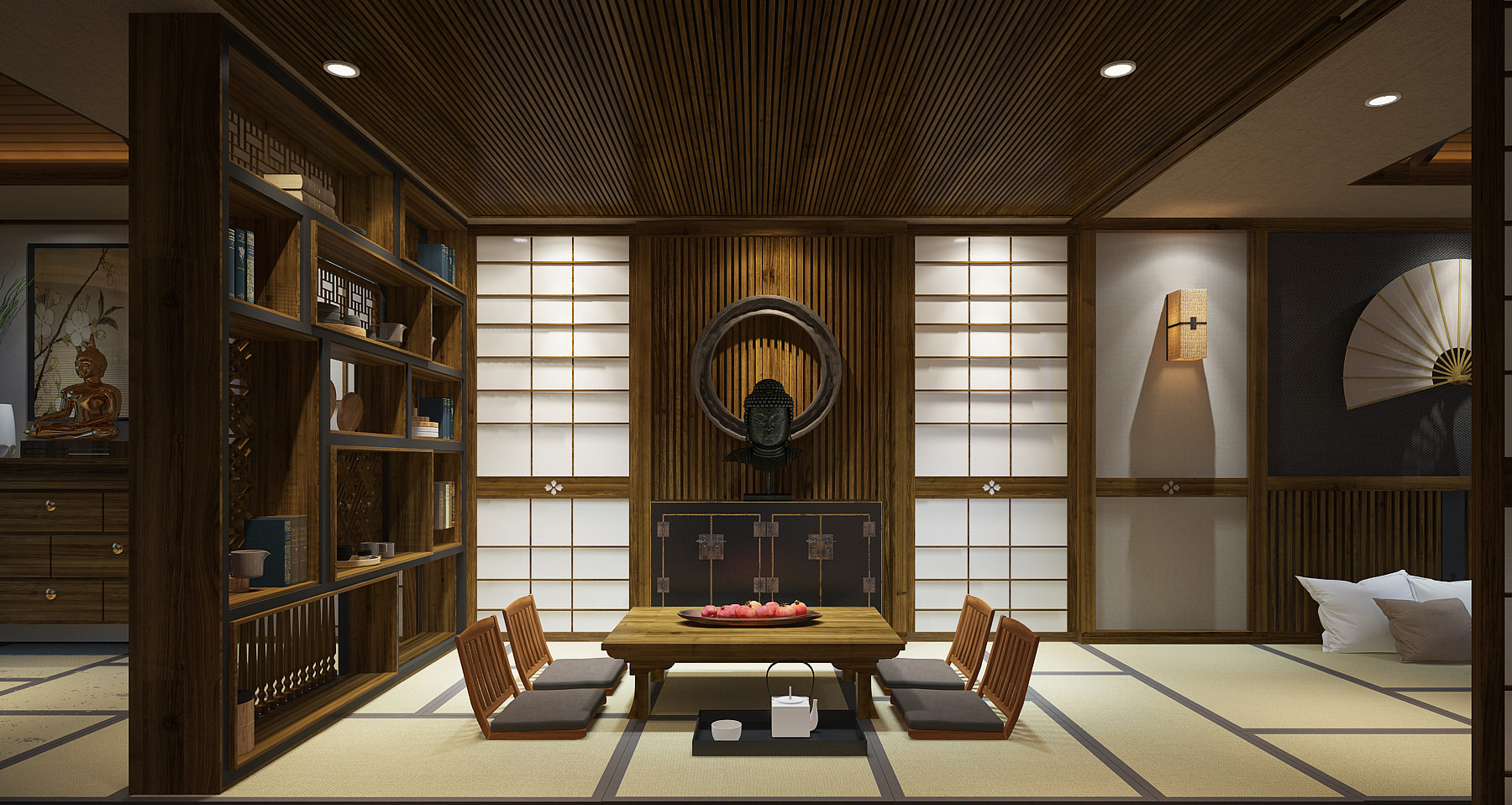 - Đặc biệt, thiết kế cửa trượt (Shoji) luôn được dùng để trang trí nhà phong cách Nhật Bản thêm đặc biệt và mang đậm nét đặc trưng văn hóa. Không chỉ giúp không gian phòng khách sẽ gọn gàng hơn, mà còn giúp mở rộng tối đa không gian.